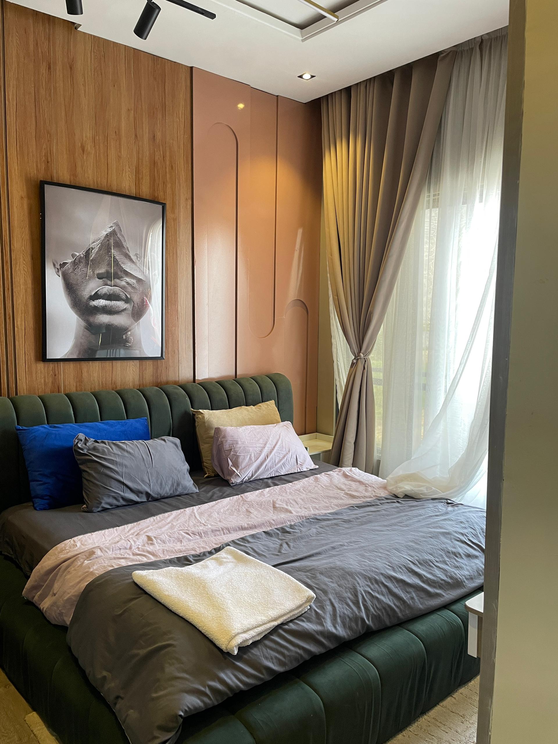 Enjoy spacious, well-lit rooms furnished with contemporary pieces and smart technology. The apartment features a fully equipped kitchen, modern bathroom fittings, and access to premium amenities including a swimming pool, high-speed internet, and 24/7 security.