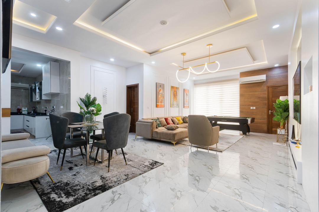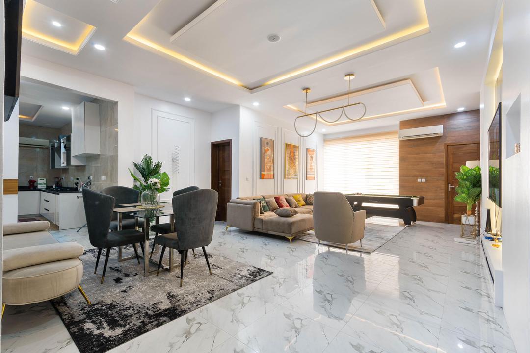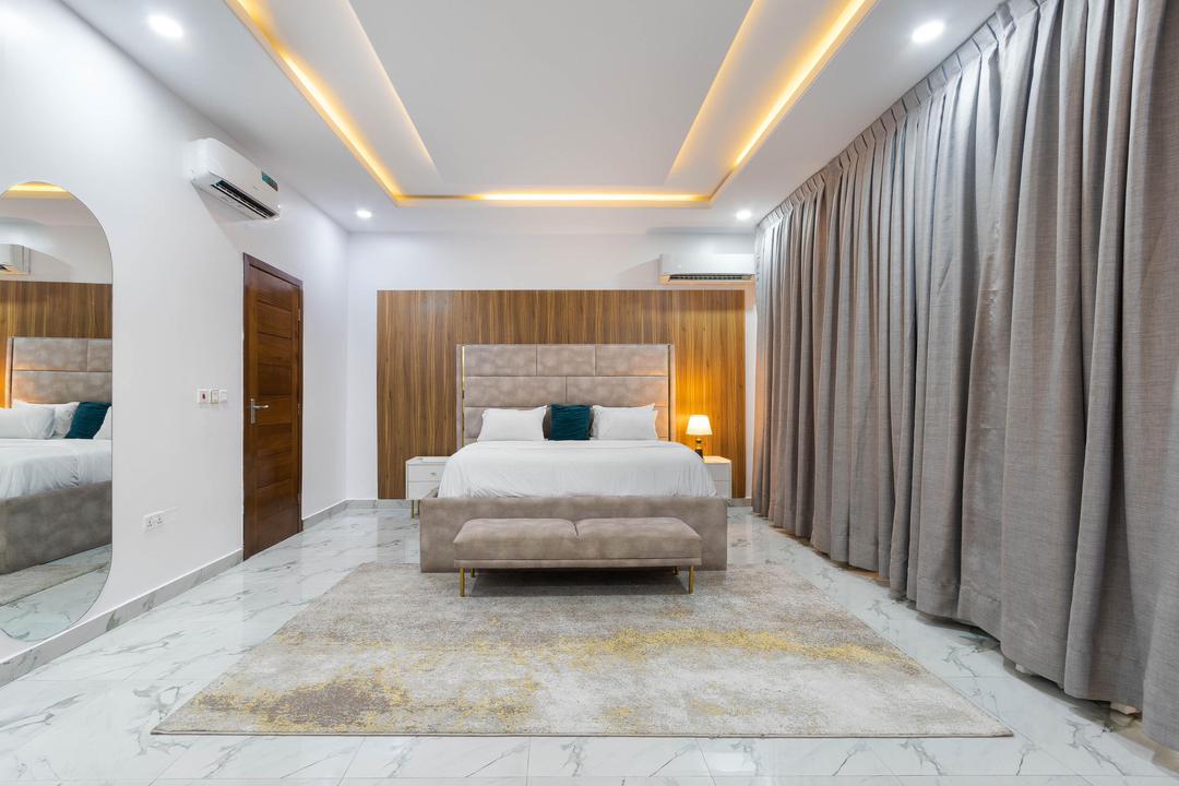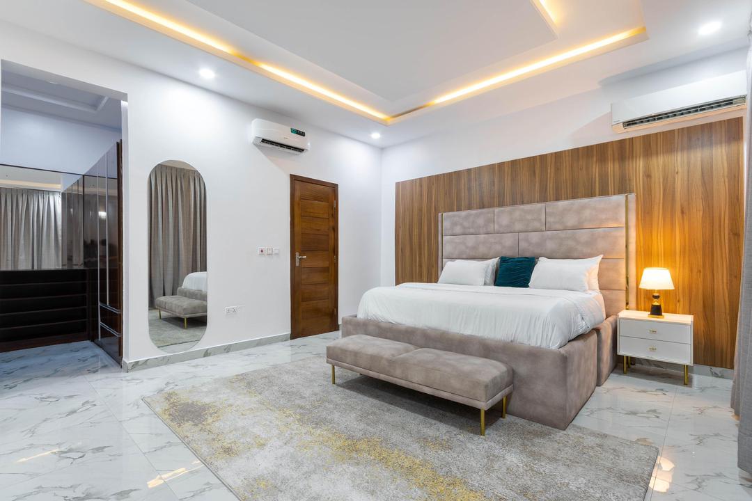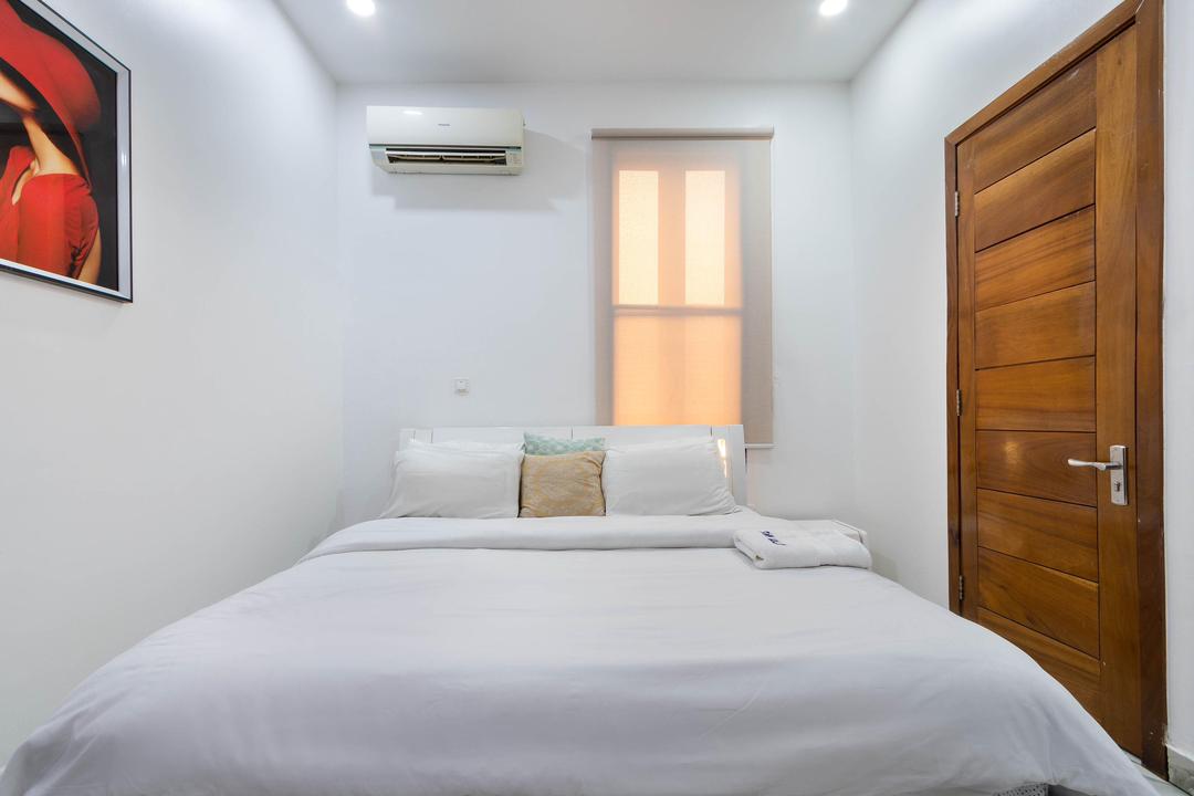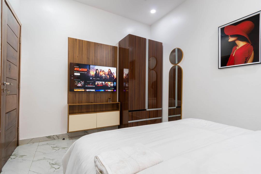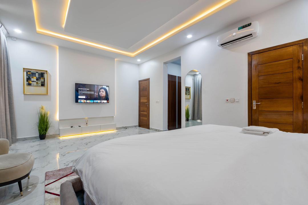 A premium 2-Bedroom with maximum guest size of 4 is one you don’t want to miss out on as it is in a private and safe space. This elegantly designed home features a beautifully organized living room, a fully- kitchen that is fully equipped with essential conveniences such as a microwave, blender, freezer, toaster and refrigerator to give a home aura and easy means to cook. In this home, their rooms are well furnished with a comfortable King size bed each with white beddings, and plush duvet to ensure pleasant rest is not compromised after a long day of explore. Comfortable bathroom with toiletries and wash fluids provided. All rooms are ensuite with an extra bath and guest toilet available.