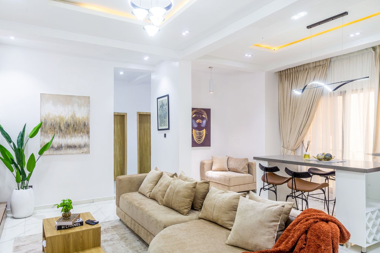 Located In Ikate Neighborhood, This Cozy 1-bedroom Is Perfect For Extended Stays. The Open-style Kitchen Is Fully Equipped, Seamlessly Connecting To A Stylish Seating Area. The Modern Urban Decor Creates A Warm Atmosphere. Enjoy A Restful Sleep On The King-size Bed And Unwind In The Ensuite Bathroom With Shower. Stay Connected With Complimentary WiFi, And Entertain Yourself With The Flat Screen TV. Additional Amenities Include Toiletries. Whether For Business Or Leisure, This Suite Offers A Comfortable And Convenient Retreat.